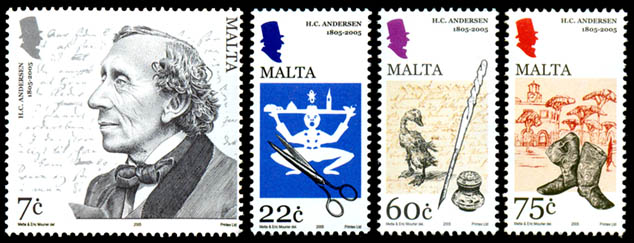 Identical stamps. A, portrait of Hans Christian Andersen,