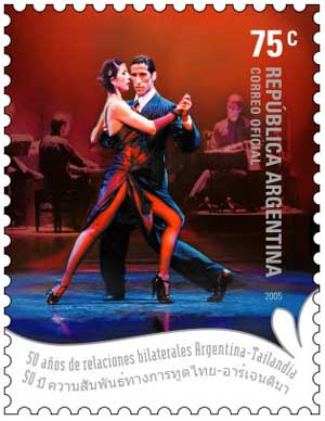 Identical stamps. Dances: Tango dance scene (Argentina) and