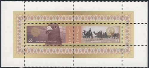 Identical pair of se-tenant stamps. A, Dove and map; B, Caravan