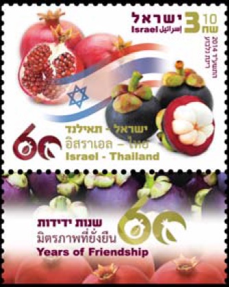 Identical stamps. Pomegranate (Israel) and mangosteen fruit (Thailand) Garcinia mangostana, flags. Multicolored.