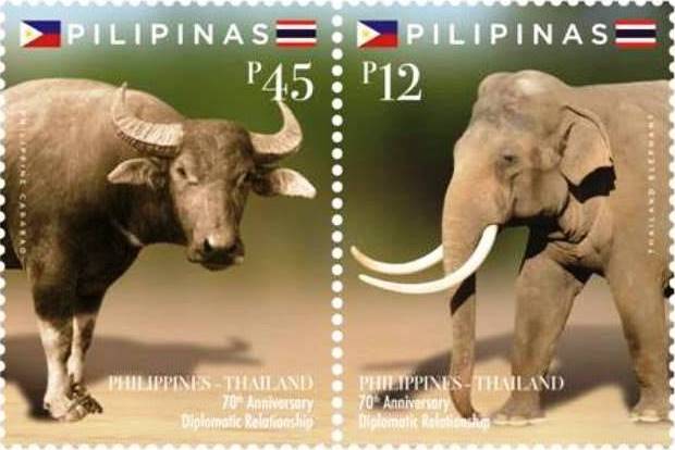 Identical stamps. Elephant and buffalo; flags of both countries. Multicolored.