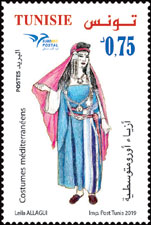Different stamps. Costumes: Algeria: Chedda from Tlemcen, Djebba from Kabyle, Kashabia from Aures; camel wool Bernous from the South of the country; Croatia: Island of Susak; Cyprus: traditional costume; Egypt: costumes inspired by ancient Egyptian civilization, costumes from Nuba region (South Egypt) and coastal area, traditional costumes depicting the dance of fishermen: France: costume of Provence; Greece: traditional attire from Xanthi, Anogeia (Crete), Kastellorizo and Lefkada; Jordan: costumes heritage of the Levant area (Jordan, Palestine, Lebanon and Syria); Lebanon: Tarboush and Tantour; Malta: -; Morocco: costumes from the Northern region; Portugal: Alentero and Algarve region costumes; Slovenia: Costume of Barcola and Servola; Spain: different dresses; Tunisia: -; Turkey: Bindall from Gaziantep and Antalya bride costume. Multicolored.