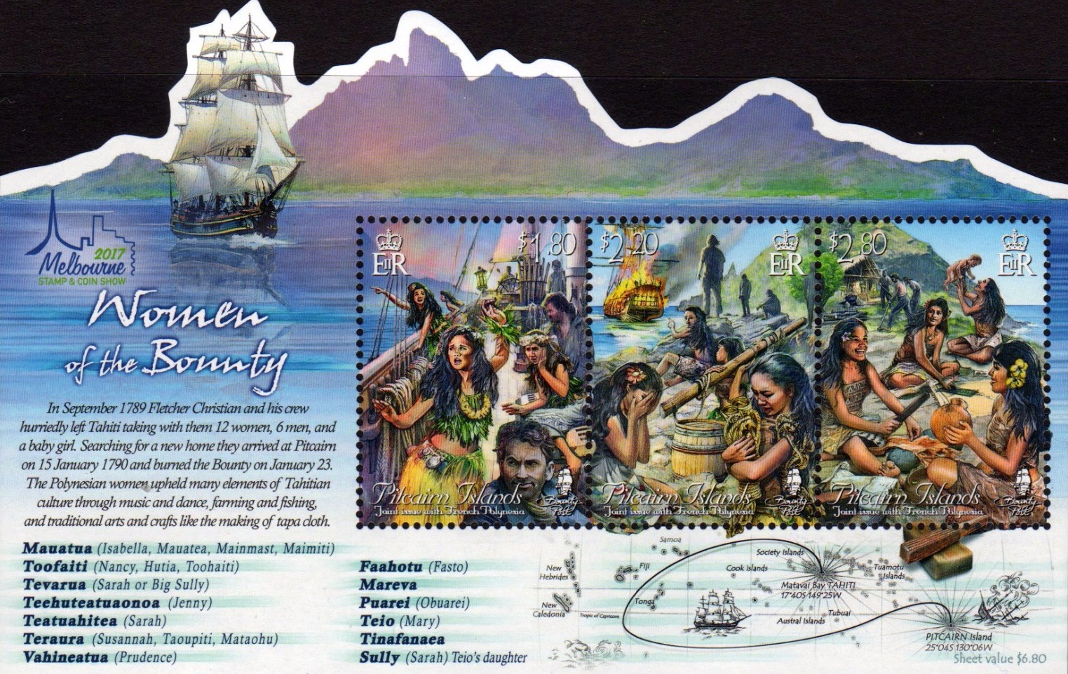 Great discovery from Don Birschel (USA), not even noticed in France yet, by French Polynesia and Pitcairn and relative to women and the Bounty. These stamps were released during the international philatelic exhibition 2017 in Melbourne, Australia, on March 30, 2017.