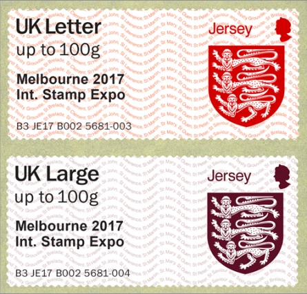 Fabio Bonacina and Enzo Cafaro (Italy) inquired about the status of the 'Post and Go' labels from Guernsey and Jersey overprinted with the 2017 Melbourne exhibition announcement. Date of issue seems to be March 30, 2017 and both postal administrations will have a shared booth during the exhibition. At a first glance, we started considering these items as a joint issue although it is an overprint and not a special stamp issued at this occasion.